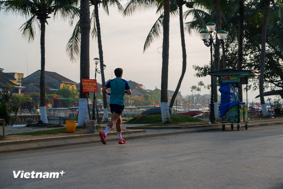 Khoảng thời gian buổi sáng sớm là "khung giờ vàng" của nhịp sống. Họ chạy bộ, hít thở bầu không khí mà chỉ vài tiếng nữa thôi sẽ sôi động bước chân du khách. (Ảnh: Thanh Phong/Vietnam+)