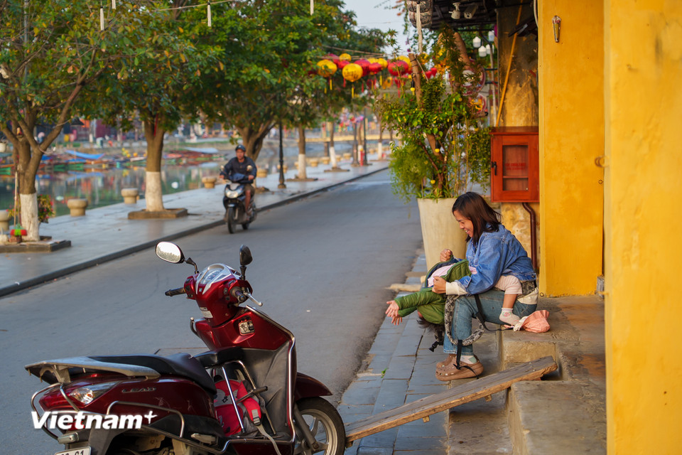 Khoảnh khắc tình mẫu tử ấm áp bên hiên nhà cổ thể hiện sức sống bền bỉ, mạnh mẽ và độc đáo của di sản văn hóa Thế giới phố cổ Hội An. (Ảnh: Thanh Phong/Vietnam+)
