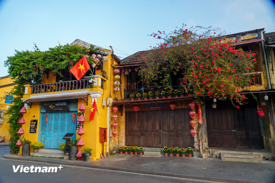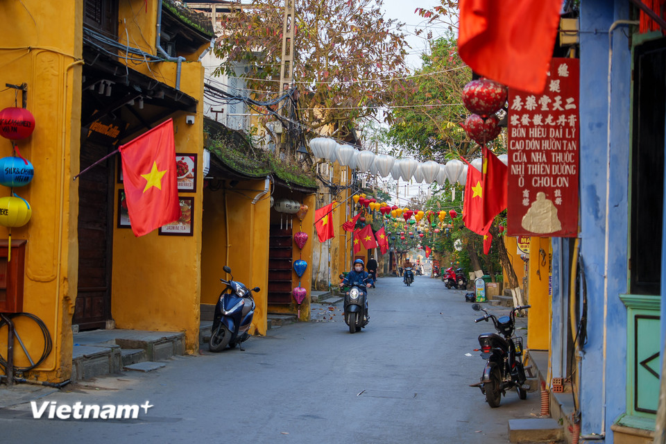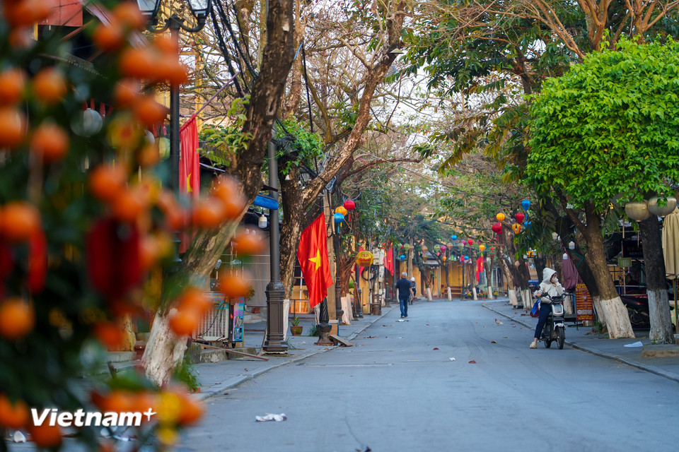Một Hội An "lạ lẫm" khi vắng bóng người. Những con phố dài hun hút như được trả lại không gian để "thở" sau một đêm dài náo nhiệt. (Ảnh: Thanh Phong/Vietnam+)