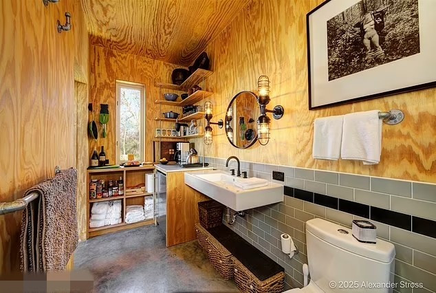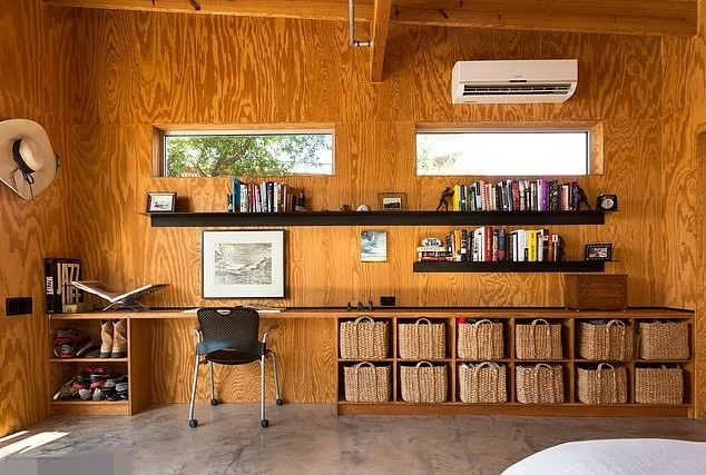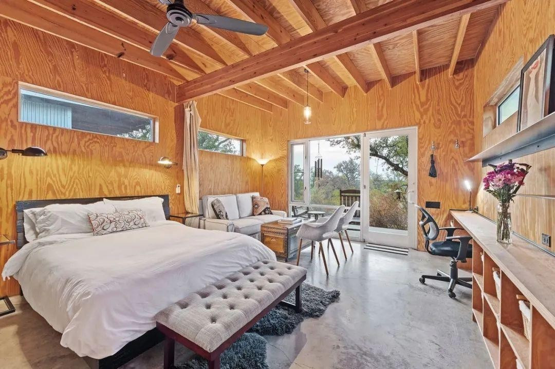Nhà gỗ rộng chỉ khoảng 38m2 nhưng được trang bị đầy đủ tiện nghi: một giường lớn, ghế sofa, phòng tắm riêng và một góc nghỉ ngơi ấm cúng. Ảnh: DM