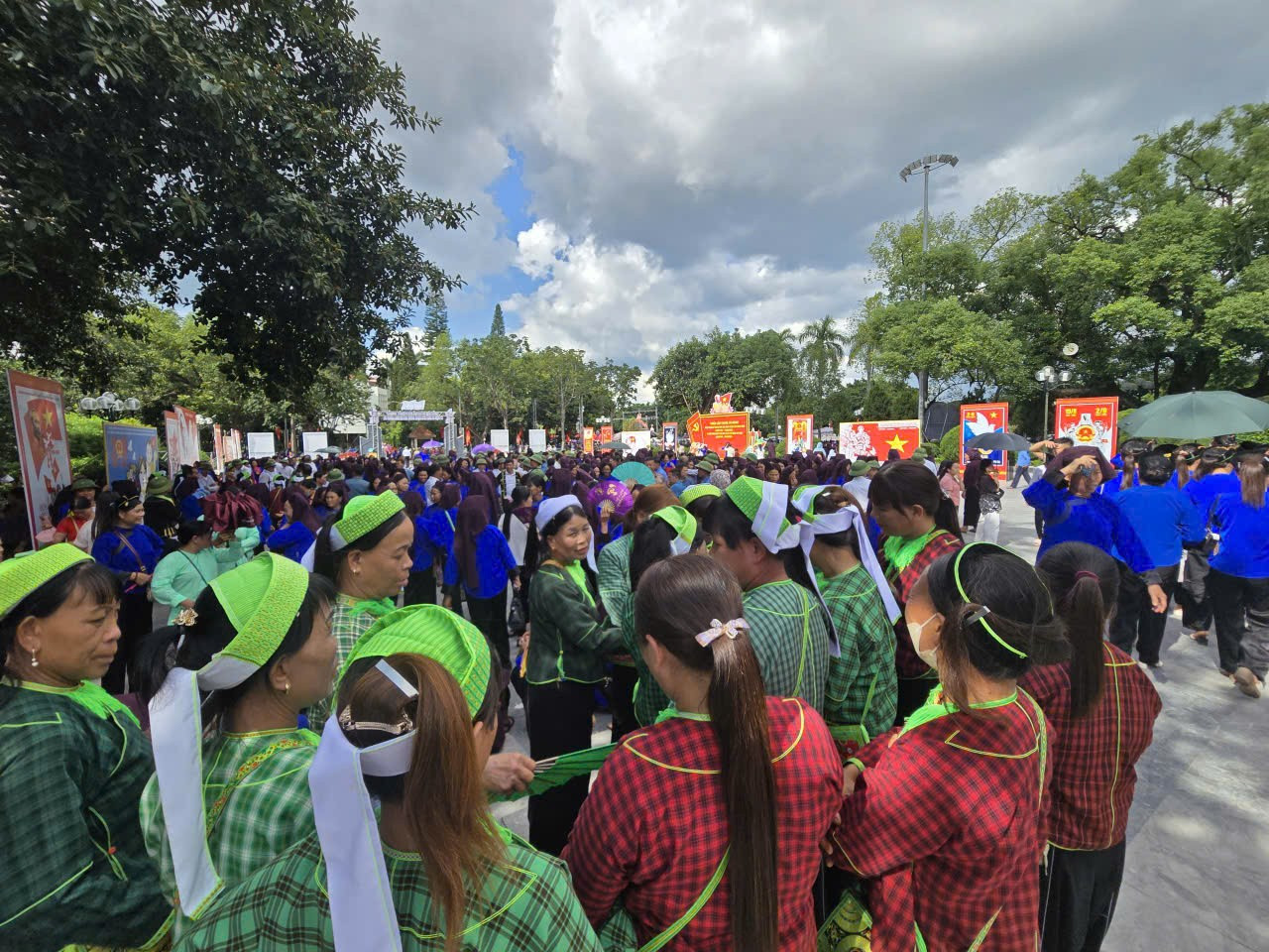 Sắc chàm đan kín hội Háng Pỉnh ở tượng đài Hoàng Văn Thụ ảnh: Duy Chiến