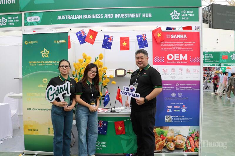 Gian hàng của Hiệp hội Doanh nghiệp Úc tại Việt Nam (AusCham) tại Hội chợ Mùa Thu lần thứ nhất - 2025. Ảnh: Phong Lâm