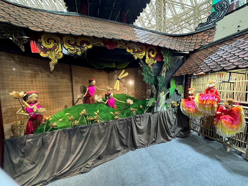 Không kém phần hấp dẫn là nghệ thuật múa rối, một biểu tượng của văn hóa Việt Nam. Tại hội chợ, các nghệ sĩ đã mang đến nhiều tiết mục múa rối cạn và rối nước, tái hiện những câu chuyện dân gian gần gũi, tạo bầu không khí vui tươi, lôi cuốn khán giả nhỏ tuổi cũng như người lớn. Các tiết mục được dàn dựng với kỹ thuật điều khiển tài tình, âm nhạc dân gian sống động, giúp người xem cảm nhận rõ nét sự sáng tạo và bàn tay khéo léo của nghệ nhân Việt.