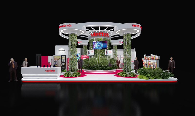 Toàn bộ không gian trưng bày của Viettel được thiết kế xoay quanh chủ đề “Hành trình sáng tạo vì con người”, khái quát hành trình phát triển xuyên suốt 36 năm của doanh nghiệp, từ kết nối, số hóa, kiến tạo đến sáng tạo vì con người. Tại đây, Viettel giới thiệu các giải pháp công nghệ hiện diện trong đời sống hàng ngày: hạ tầng 5G, nền tảng số, ứng dụng tài chính, nhà thông minh, công nghệ vận hành doanh nghiệp và tự động hóa.