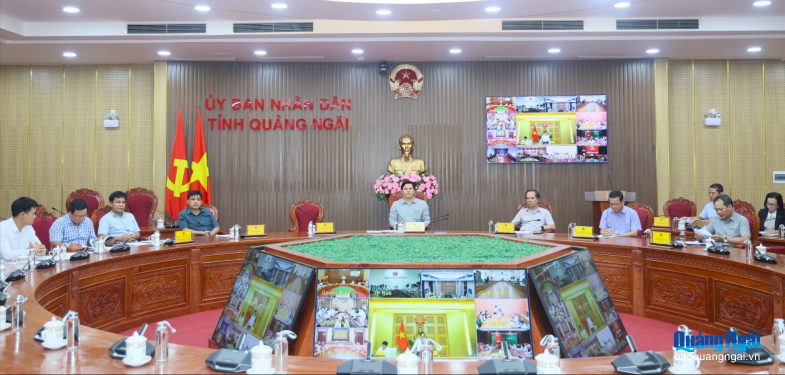 Tại điểm cầu UBND tỉnh Quảng Ngãi, Phó Chủ tịch UBND tỉnh Trần Phước Hiền cùng đại diện lãnh đạo các sở, ngành liên quan tham dự.