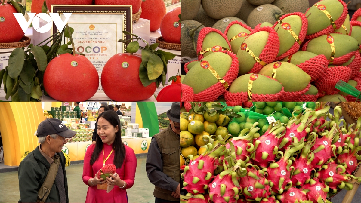 Hoa quả tươi đạt chuẩn Ocop của các vùng miền được vận chuyển liên tục ra Hội chợ Mùa Xuân