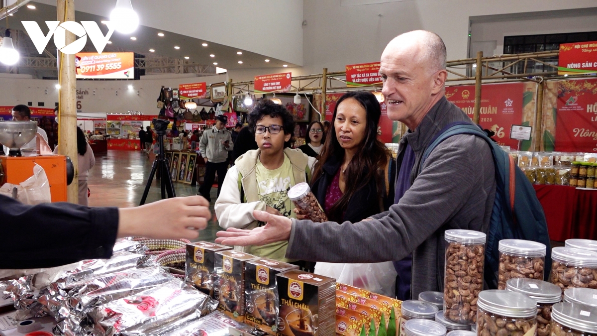Nhiều du khách nước ngoài hào hứng trải nghiệm tham quan mua sắm tại Hội chợ Mùa Xuân 2026