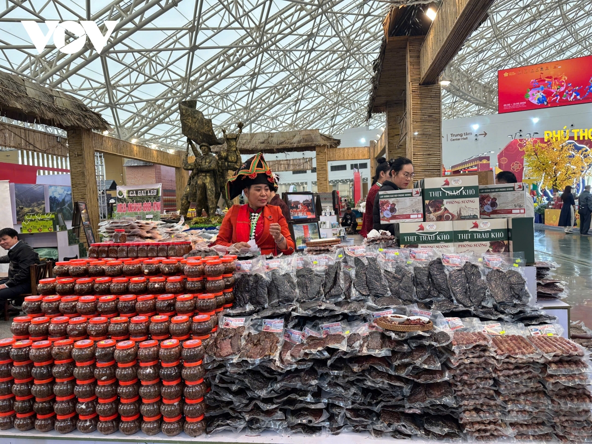 Các gian hàng Tây Bắc được bày trí với những nét văn hóa đặc trưng và đa dạng các sản phẩm thu hút người tiêu dùng
