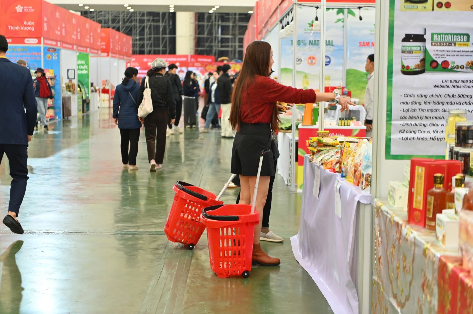Ban tổ chức cho biết, việc bổ sung giỏ và xe kéo nhằm đáp ứng nhu cầu mua sắm ngày càng tăng của người dân, đặc biệt với các mặt hàng nông sản, thực phẩm và hàng tiêu dùng thiết yếu. Giải pháp này không chỉ giúp nâng cao trải nghiệm người mua mà còn hỗ trợ các gian hàng trong việc tăng khả năng tiêu thụ sản phẩm.