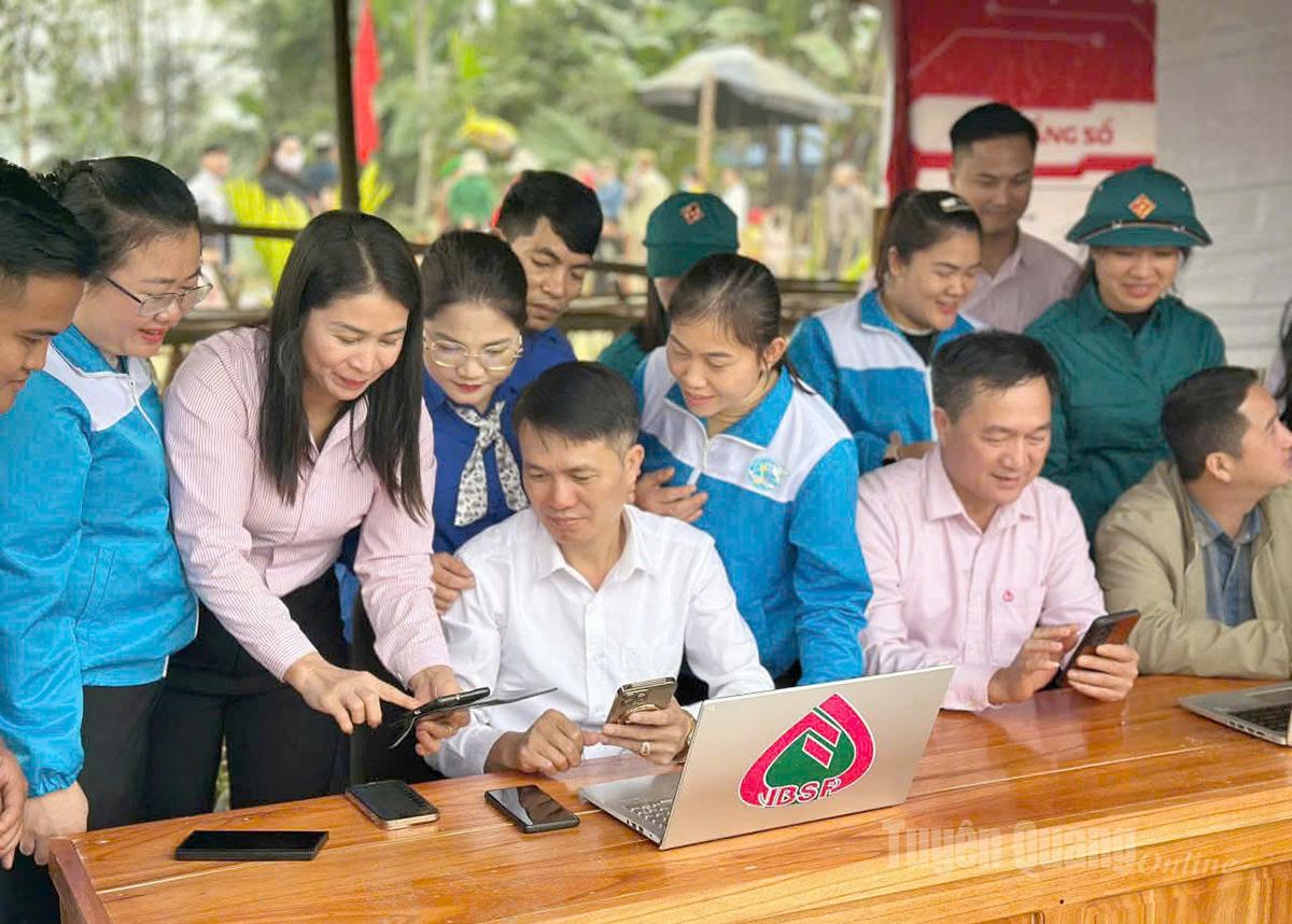 Tại hội chợ số, cán bộ các phòng, ban chuyên môn, Công an xã Tiên Yên phối hợp với các đơn vị viễn thông, ngân hàng, bưu điện, điện lực tư vấn, giúp người dân cài đặt, sử dụng ứng dụng VNeID; cách bảo mật thông tin cá nhân khi thực hiện dịch vụ công trực tuyến; thanh toán không dùng tiền mặt, sử dụng ví điện tử.