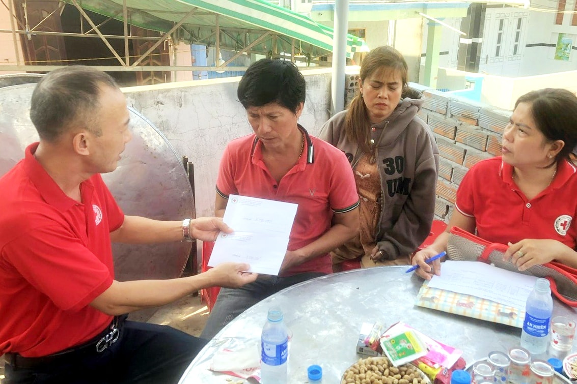 Đoàn công tác của Hội Chữ thập đỏ tỉnh đã đến thăm hỏi, động viên và hỗ trợ kinh phí cho các hộ gia đình tại xã Phan Rí Cửa không may có người thân bị tai nạn giao thông.