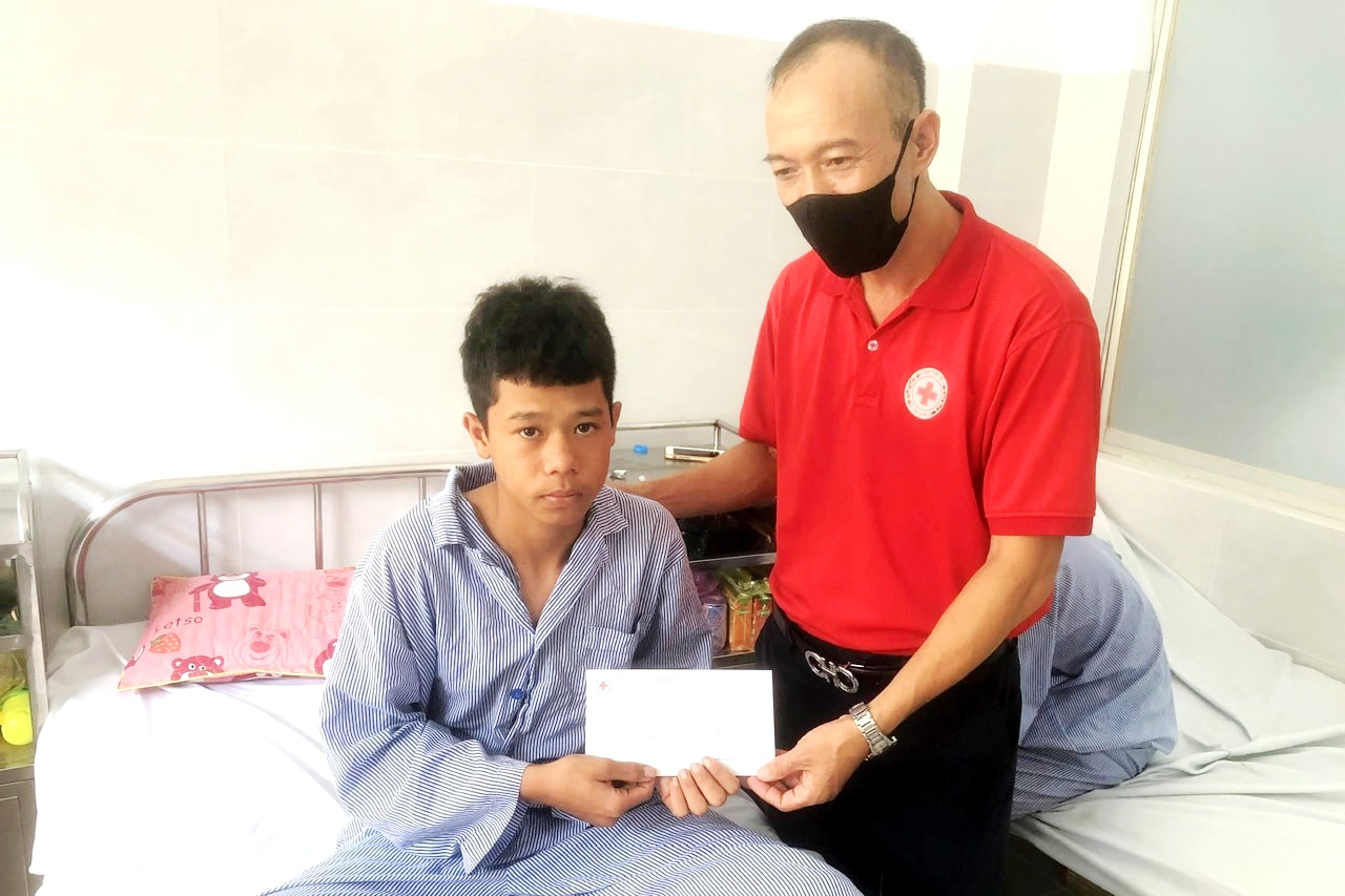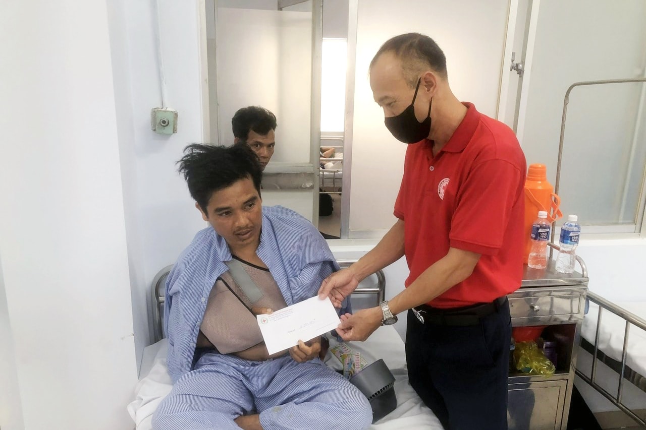 Hội Chữ thập đỏ tỉnh trao tiền hỗ trợ cho người bị thương do tai nạn giao thông