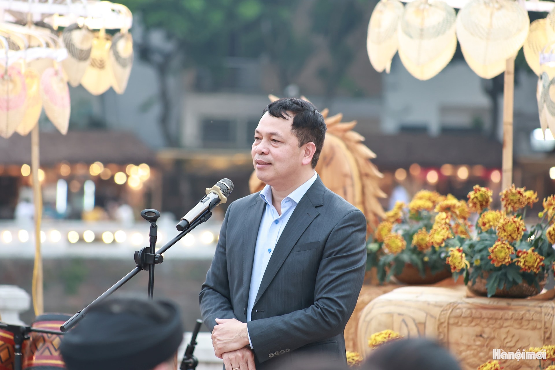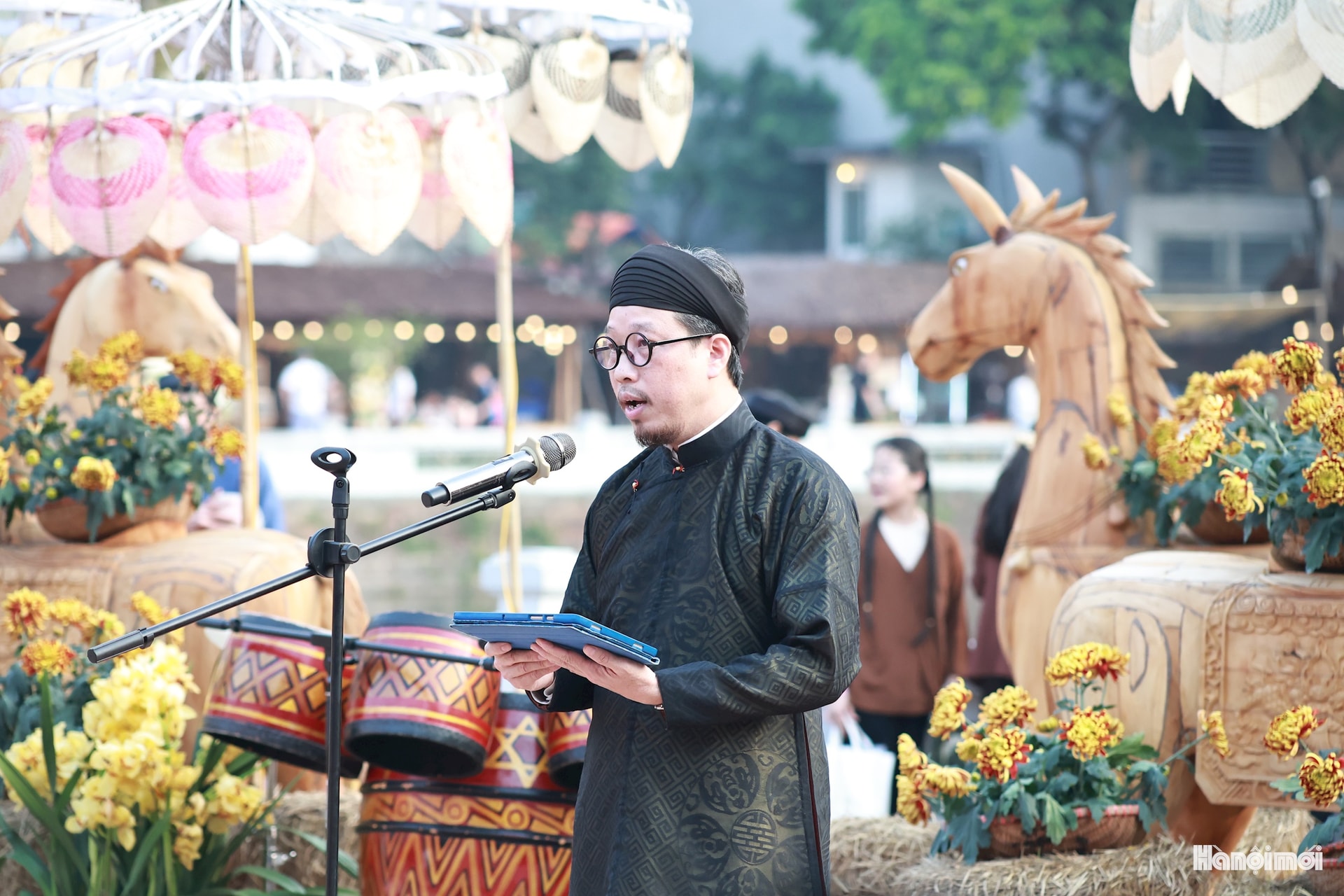 TS Lê Xuân Kiêu Giám đốc Trung tâm Hoạt động Văn hóa Khoa học Văn Miếu - Quốc Tử Giám phát biểu tại Lễ bế mạc Hội chữ Xuân