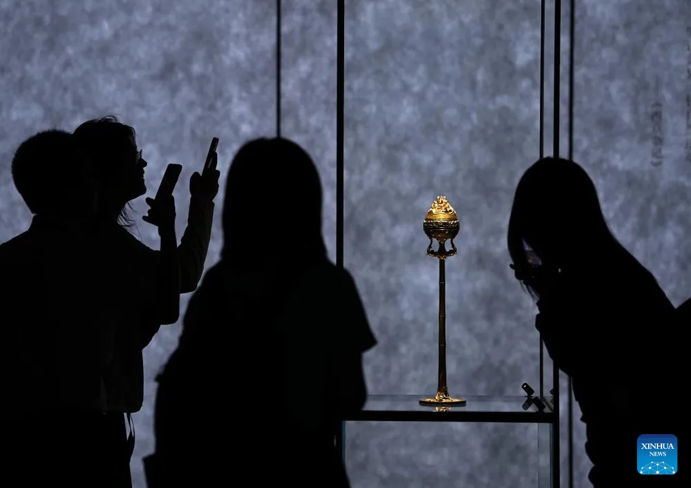 Khách tham quan chiêm ngưỡng vật trưng bày tại Bảo tàng Lịch sử Thiểm Tây (Trung Quốc) vào tháng 5-2024. Ảnh: TÂN HOA XÃ