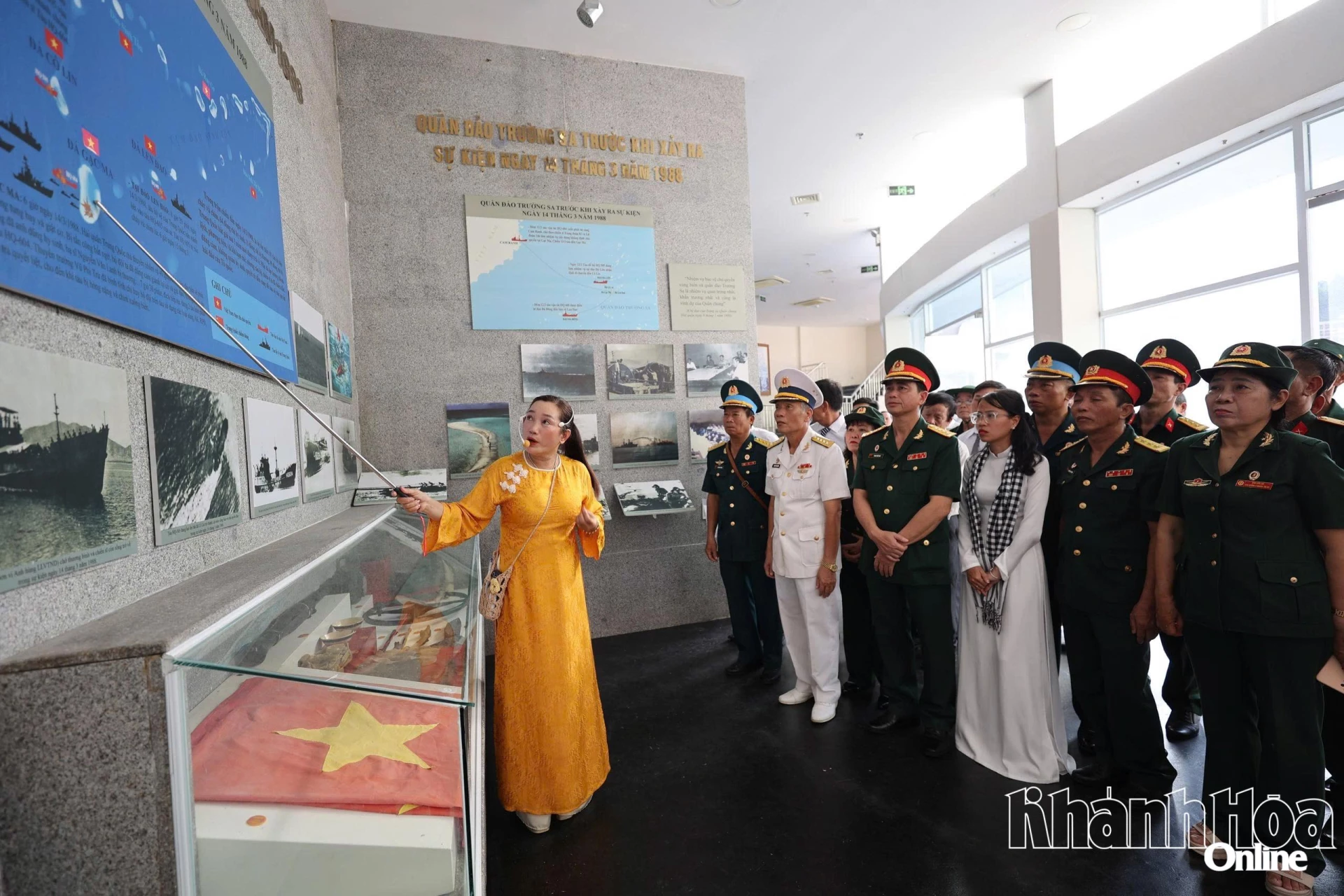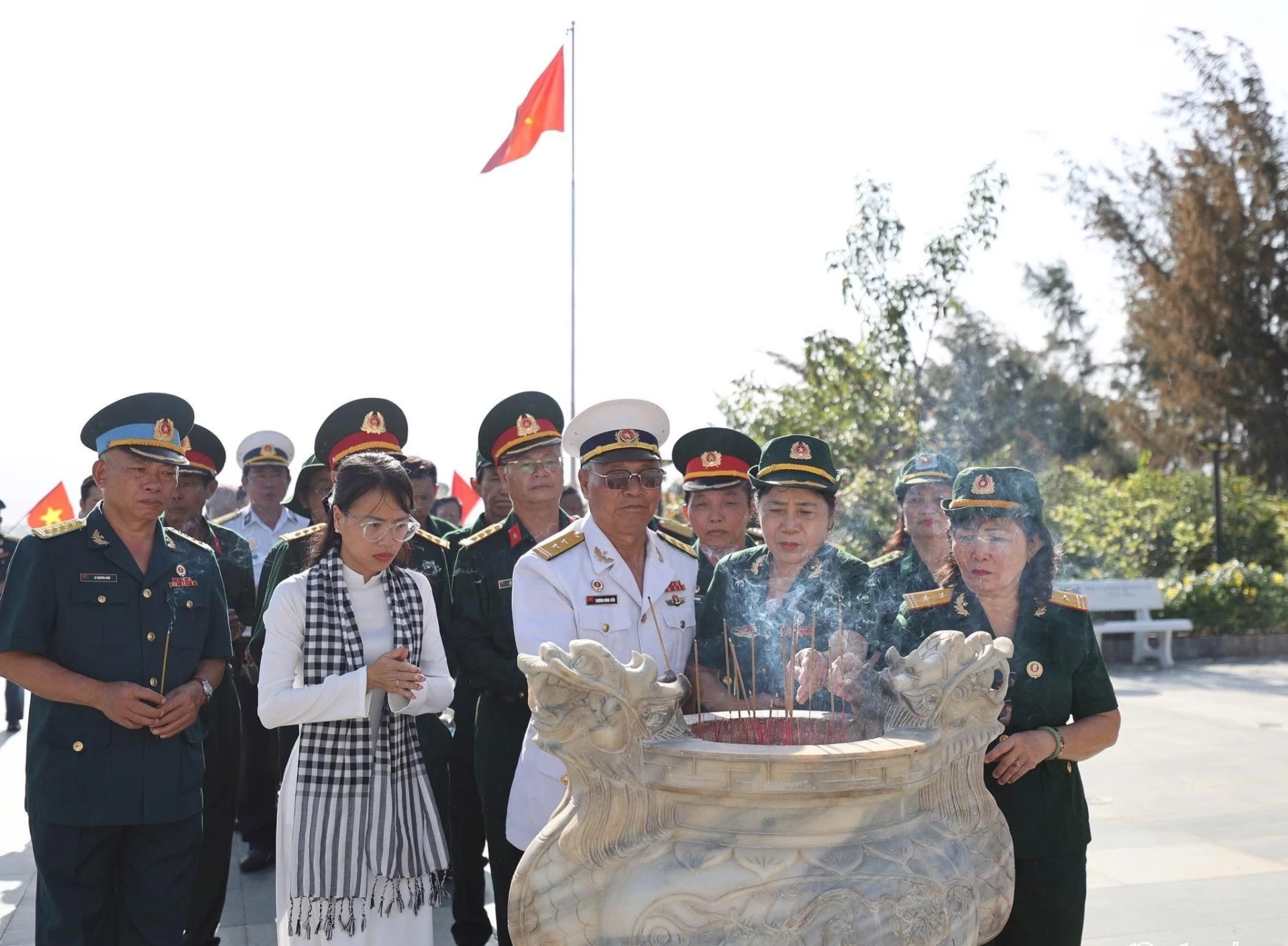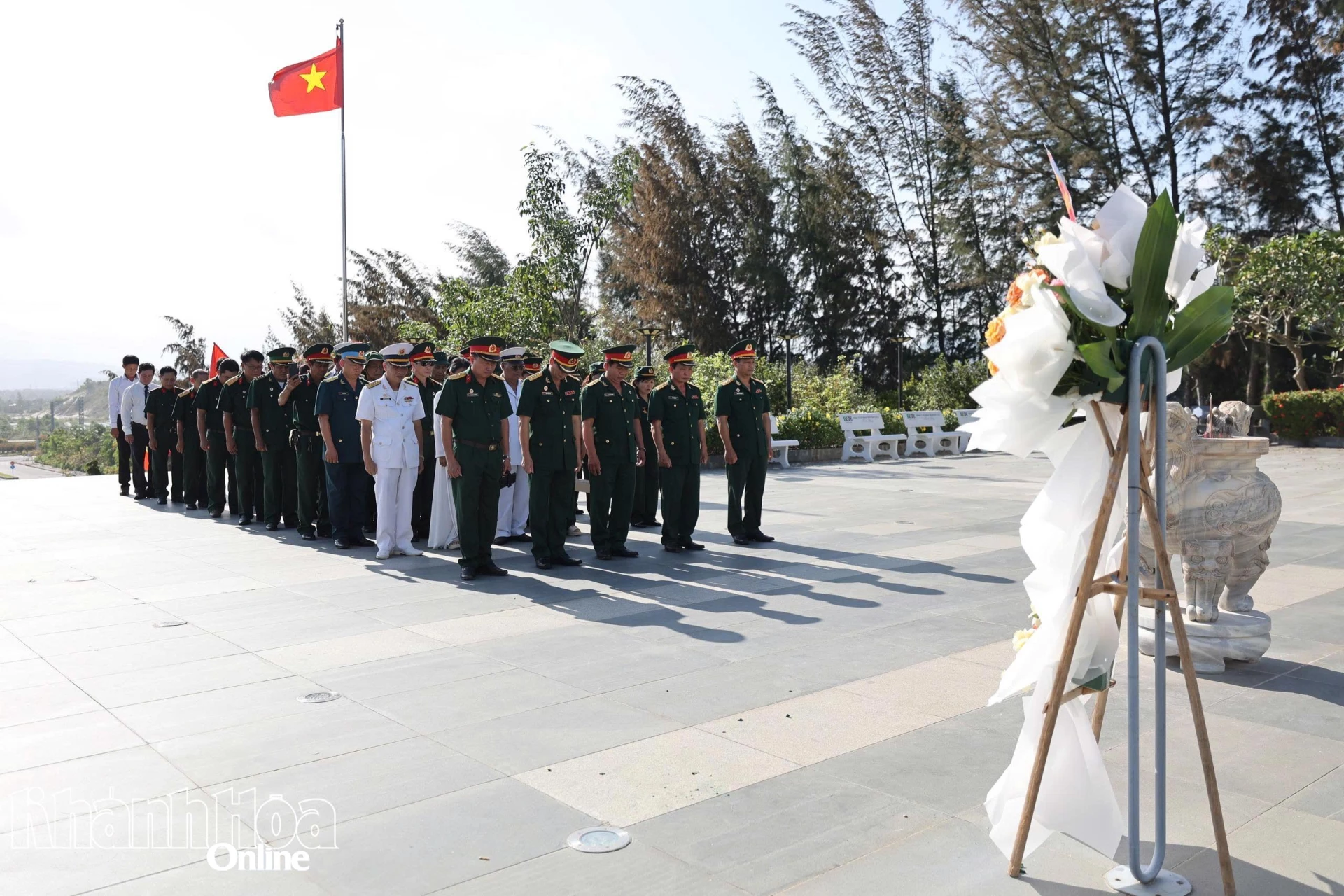Tại Tượng đài “Những người nằm lại phía chân trời”, trong không khí trang nghiêm và xúc động, đoàn đã kính cẩn dâng hoa, dâng hương và dành một phút mặc niệm để tưởng nhớ 64 liệt sĩ đã hy sinh anh dũng trong trận chiến bảo vệ chủ quyền tại các bãi đá Gạc Ma, Cô Lin, Len Đao vào ngày 14-3-1988. Tiếp đó, đoàn đến thắp hương tại khu mộ gió và tham quan bảo tàng ngầm. Tại đây, những kỷ vật đơn sơ như chiếc dép cao su, những lá thư tay hay mảnh vỡ từ con tàu HQ-604 đã tái hiện thời khắc bi tráng các chiến sĩ đã kết thành “vòng tròn bất tử” để bảo vệ lá cờ Tổ quốc giữa trùng khơi.