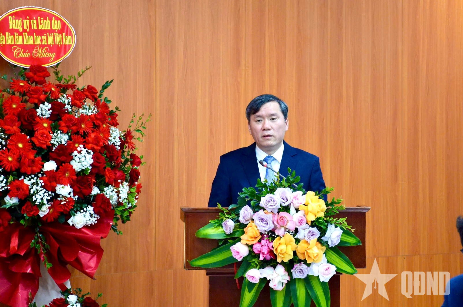 GS, TS Lê Văn Lợi, Bí thư Đảng ủy, Chủ tịch Viện Hàn lâm KHXH Việt Nam phát biểu chỉ đạo đại hội.
