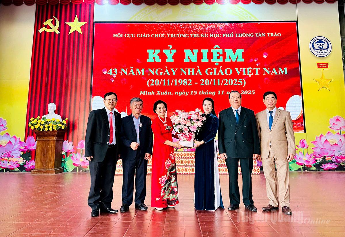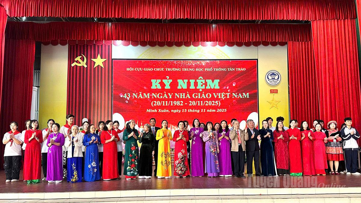 Tại buổi gặp mặt, các đại biểu cùng nhau ôn lại truyền thống vẻ vang của Ngày Nhà giáo Việt Nam, thưởng thức các tiết mục văn nghệ do thầy cô và hội viên biểu diễn, tạo nên không khí thân tình, gắn kết. Các cựu giáo chức đã trao đổi kinh nghiệm, động viên nhau trong cuộc sống, đồng thời thống nhất phương hướng hoạt động thời gian tới, tiếp tục xây dựng tổ chức Hội ngày càng vững mạnh. Hội Cựu giáo chức trường THPT Tân Trào được thành lập năm 2011, đến nay có 108 hội viên. Những năm qua, các hội viên luôn tích cực tham gia công tác giáo dục, khuyến học, khuyến tài; góp phần xây dựng xã hội học tập, giữ mãi truyền thống hiếu học của nhà trường và địa phương.