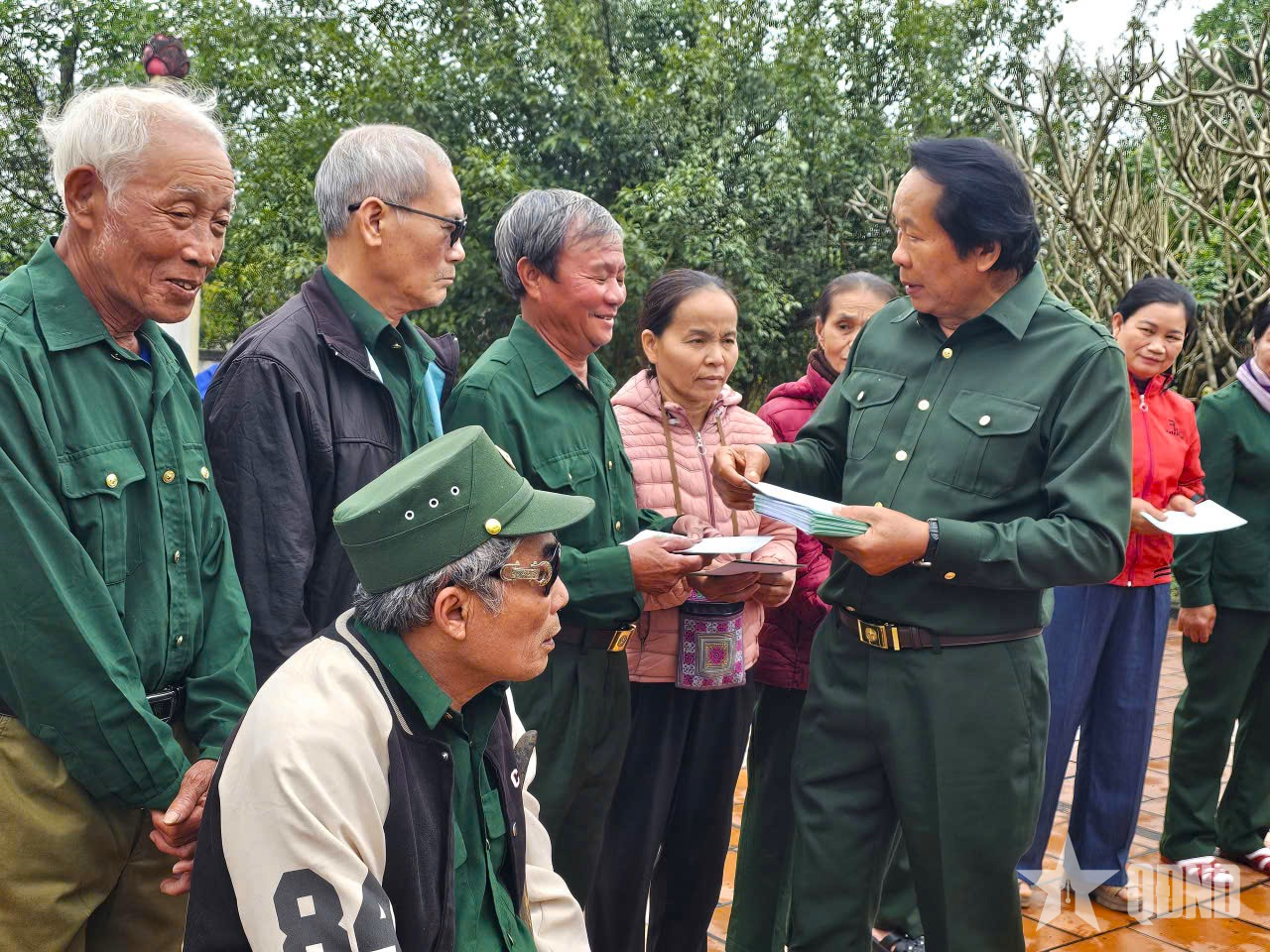 Đồng chí Thân Đức Nam và các doanh nghiệp trao quà tặng các cựu quân nhân, thanh niên xung phong, thân nhân gia đình liệt sĩ.