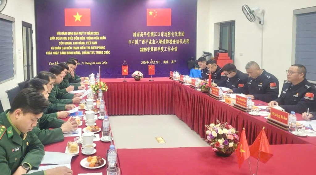 Hội đàm công tác thường niên quý IV/2025 giữa Đồn Biên phòng Cửa khẩu Sóc Giang (Việt Nam) và Trạm Kiểm tra Biên phòng xuất, nhập cảnh Bình Mãng (Trung Quốc).