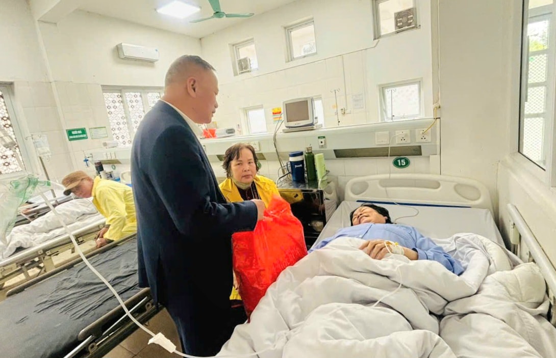 Hội doanh nghiệp Gia Lâm trao quà Tết tới những bệnh nhân có hoàn cảnh khó khăn. Ảnh: Trung Nguyên