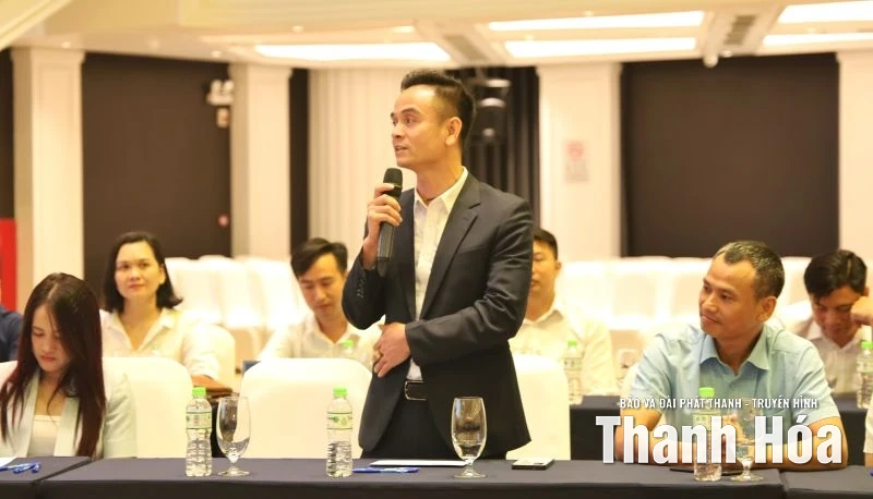 Chủ tịch Hội Doanh nhân trẻ tỉnh Thanh Hóa Nguyễn Xuân Hưng phát biểu tại hội nghị.