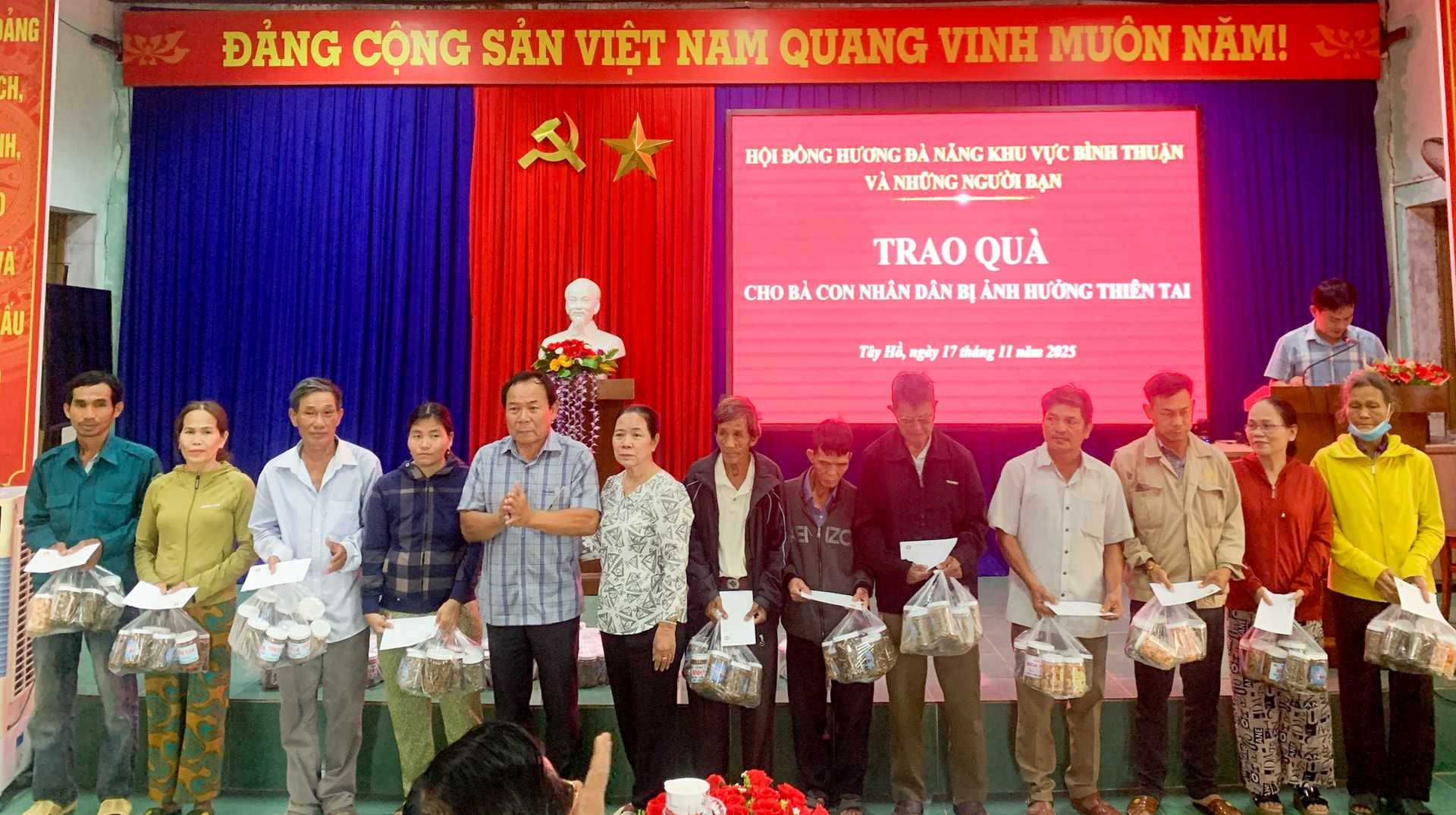Hội đồng hương TP. Đà Nẵng khu vực Bình Thuận tặng quà cho bà con bị ảnh hưởng mưa lũ