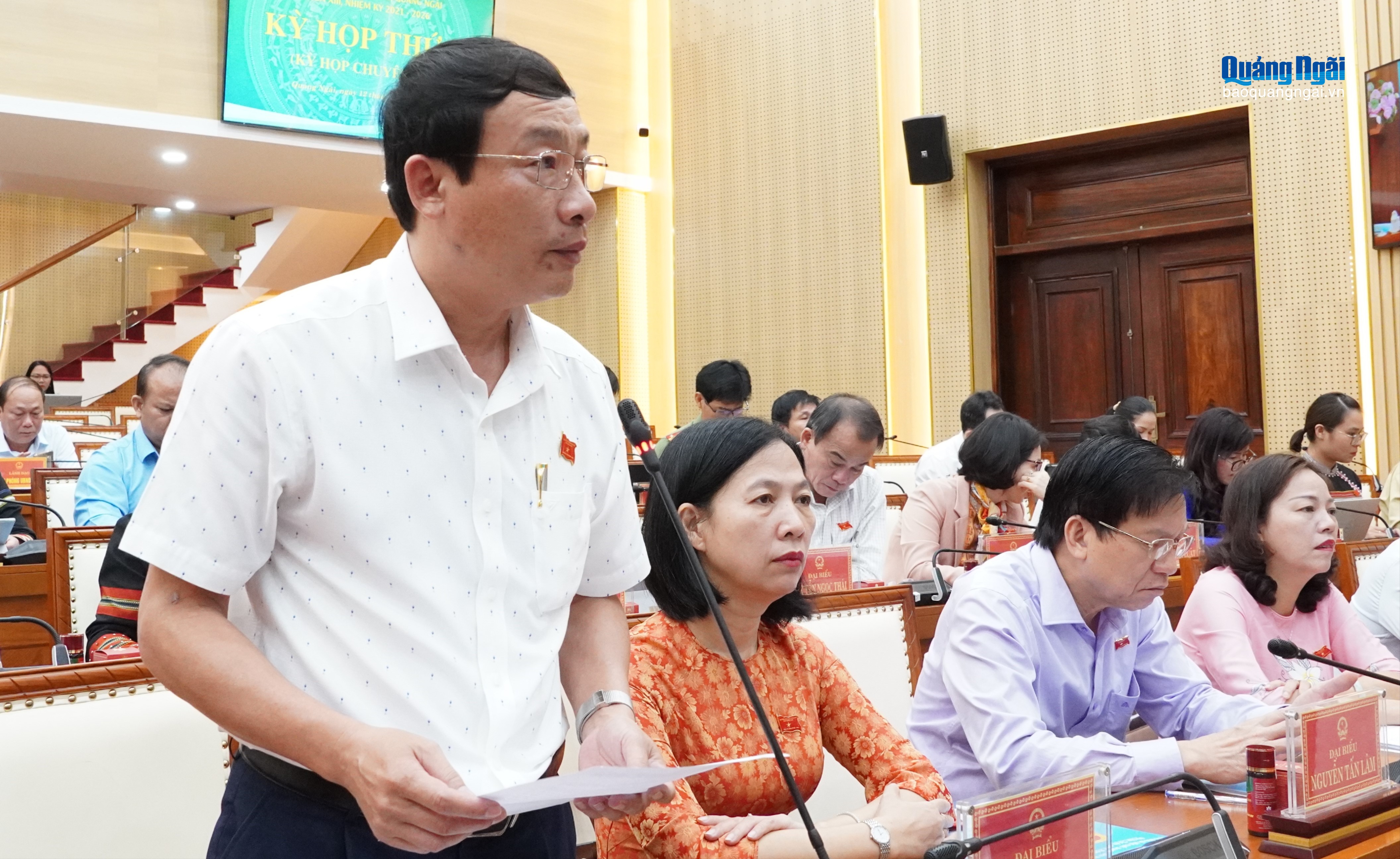 Thừa ủy quyền của Chủ tịch UBND tỉnh, Phó Chánh văn phòng UBND tỉnh Trà Thanh Trí trình bày nội dung Tờ trình dự thảo Nghị quyết về việc tiếp tục áp dụng Nghị quyết số 35/2022/NQ-HĐND ngày 7/12/2022 của HĐND tỉnh quy định chính sách hỗ trợ đối với cán bộ, công chức, viên chức, người lao động làm việc tại bộ phận một cửa các cấp trên địa bàn tỉnh Quảng Ngãi.