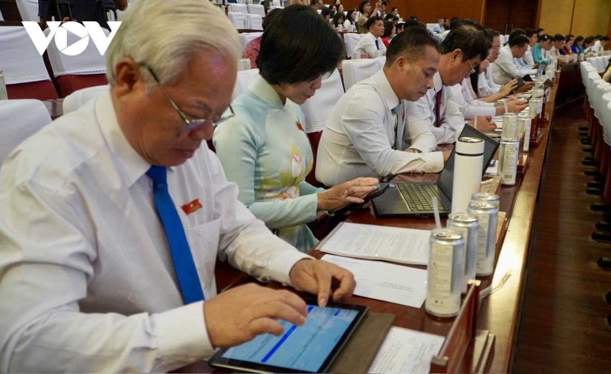 Đại biểu biểu quyết thông qua các nghị quyết, tờ trình qua App