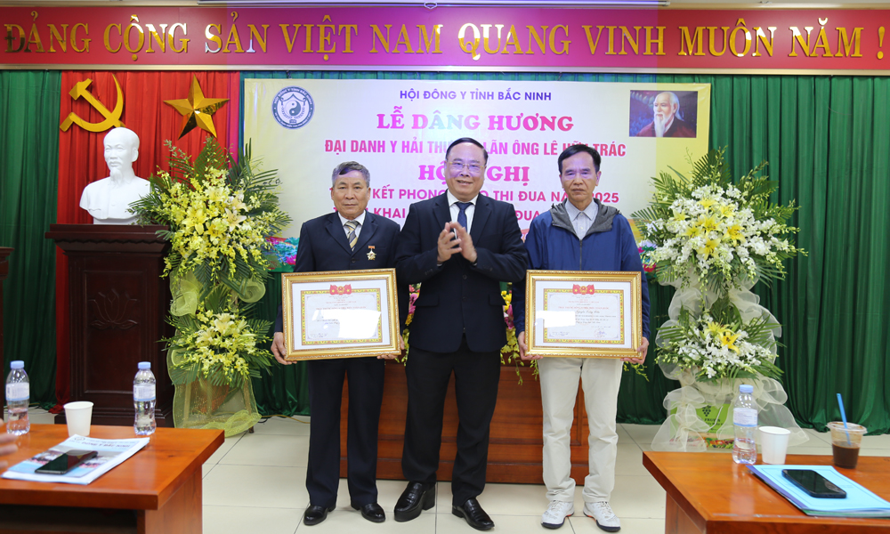 Nhân dịp này, Hội Đông y tỉnh được UBND tỉnh tặng Bằng khen có thành tích xuất sắc trong phong trào thi đua yêu nước năm 2025; 4 cá nhân là hội viên Hội Đông y tỉnh được Trung ương Hội Đông y tặng danh hiệu Thầy thuốc Đông y tiêu biểu toàn quốc; 4 phòng khám Đông y thuộc Tỉnh Hội Đông y Bắc Ninh được Trung ương Hội Đông y tặng danh hiệu Phòng khám Đông y tiêu biểu toàn quốc năm 2025. Nhiều cá nhân tiêu biểu được Trung ương Hội và Hội Đông y tỉnh khen thưởng.