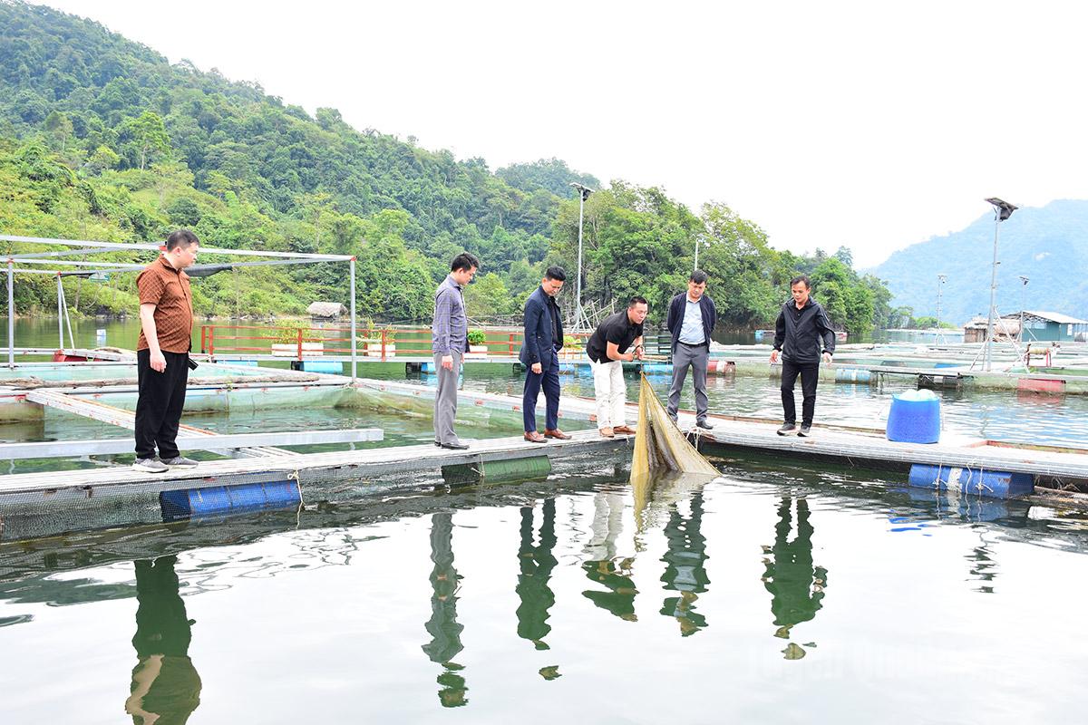Đoàn Hội Du lịch xã Đồng Văn khảo sát mô hình phát triển chăn nuôi cá trên lòng hồ Thủy điện Tuyên Quang.