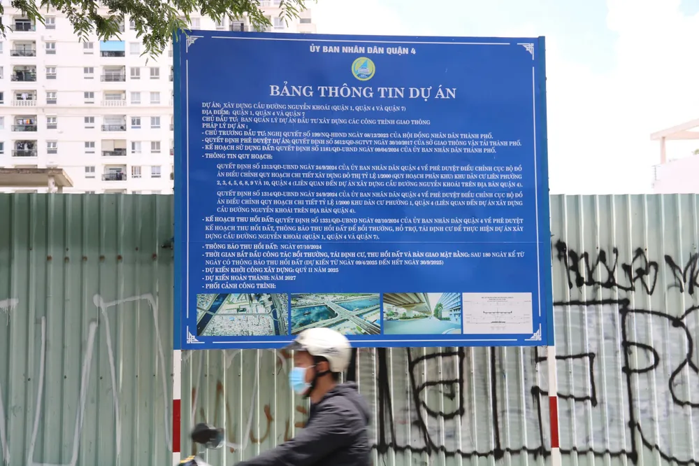 Cuối năm 2024, UBND quận 4 cũ đã phê duyệt tổng dự toán chi phí bồi thường, hỗ trợ, tái định cư dự án. Ban Giao thông đã tạm ứng chi phí bồi thường, hỗ trợ, tái định cư dự án cho Ban Bồi thường giải phóng mặt bằng Quận 4.