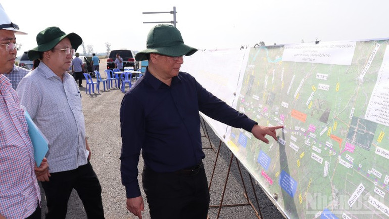 Chủ tịch Ủy ban nhân dân tỉnh An Giang kiểm tra tiến độ thi công tuyến cao tốc qua tỉnh An Giang.