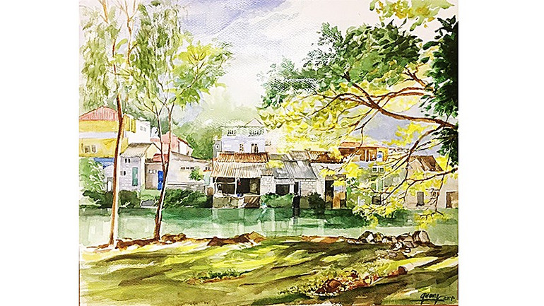 Bố cục chặt chẽ, tạo hình vững vàng, lựa chọn khoảng buông, điểm nhấn một cách tinh tế, 37 bức tranh mầu nước của họa sĩ về phong cảnh quê hương chắc chắn gợi mở nhiều cảm nhận tươi đẹp nơi người thưởng ngoạn. Các bức tranh được họa sĩ thể hiện trên giấy mỹ thuật Canson, với hai kích thước chính: 40x55cm và 56x76cm.