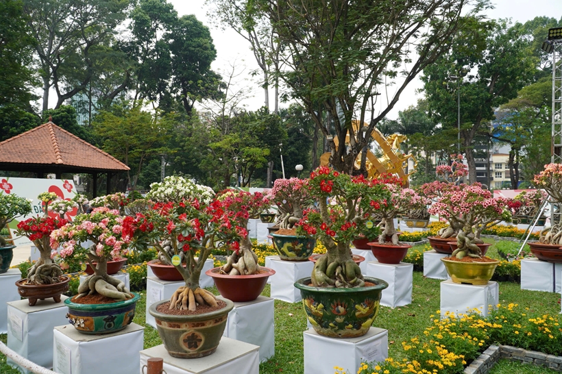 Khu vực Bonsai và tiểu cảnh lại mang đến một thái cực khác: tĩnh lặng và sâu sắc. Những tác phẩm được các nghệ nhân chăm chút qua nhiều thập kỷ, mỗi tác phẩm là một câu chuyện về sự kiên nhẫn và lòng say mê cái đẹp.