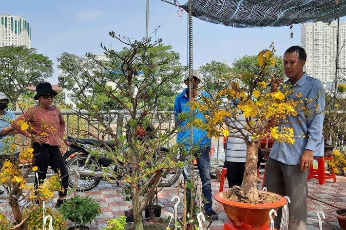 Người dân tham quan, mua hoa mai tại Chợ hoa "Trên bến dưới thuyền" tại Bến Bình Đông (Quận 8 cũ) trong một dịp cận Tết Nguyên đán. Ảnh: Quang Phương