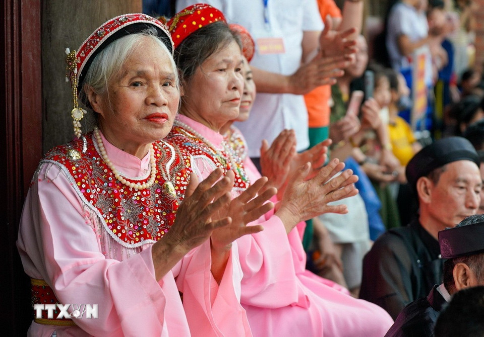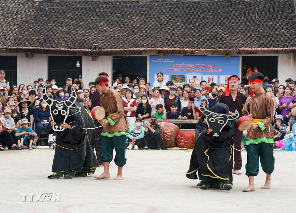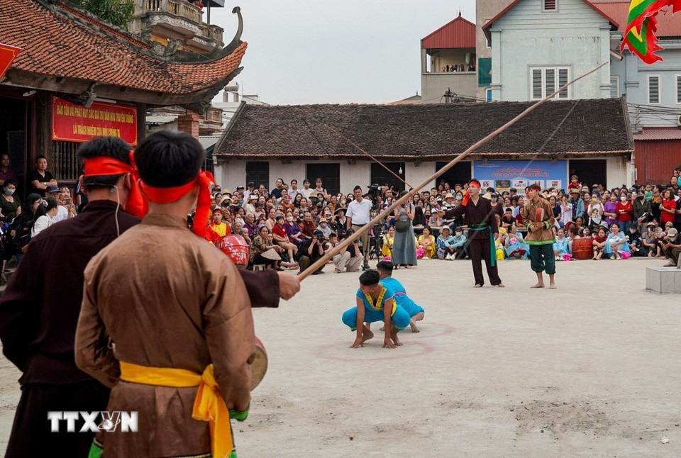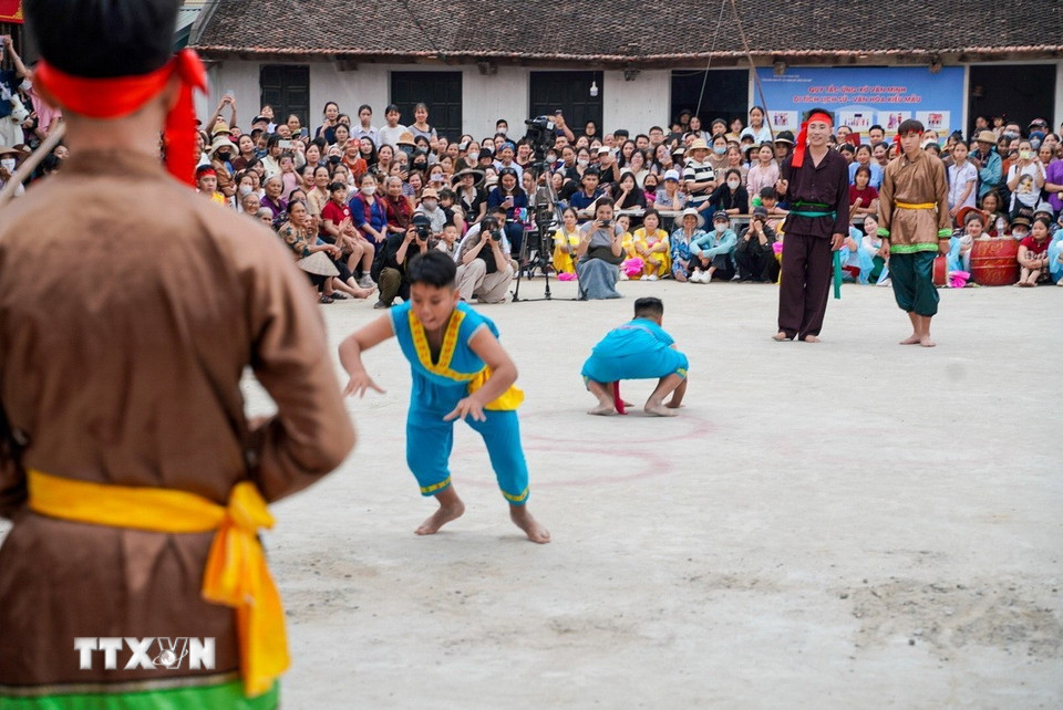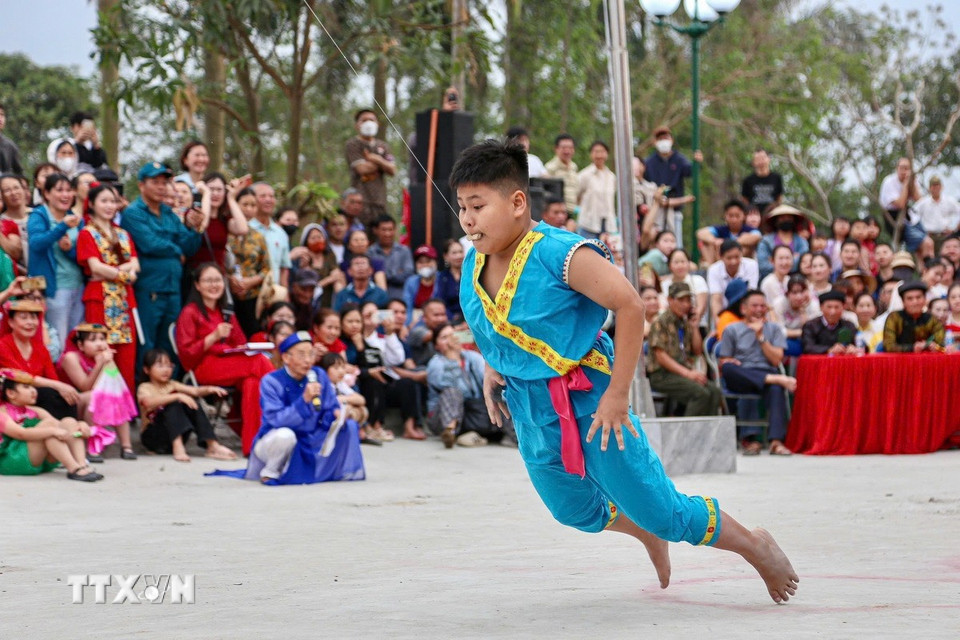 Lễ hội được tổ chức với nhiều nghi lễ và trò chơi dân gian, thể hiện tinh thần hiếu học, tinh thần thượng võ của dân tộc. (Ảnh: Hà Anh/TTXVN)