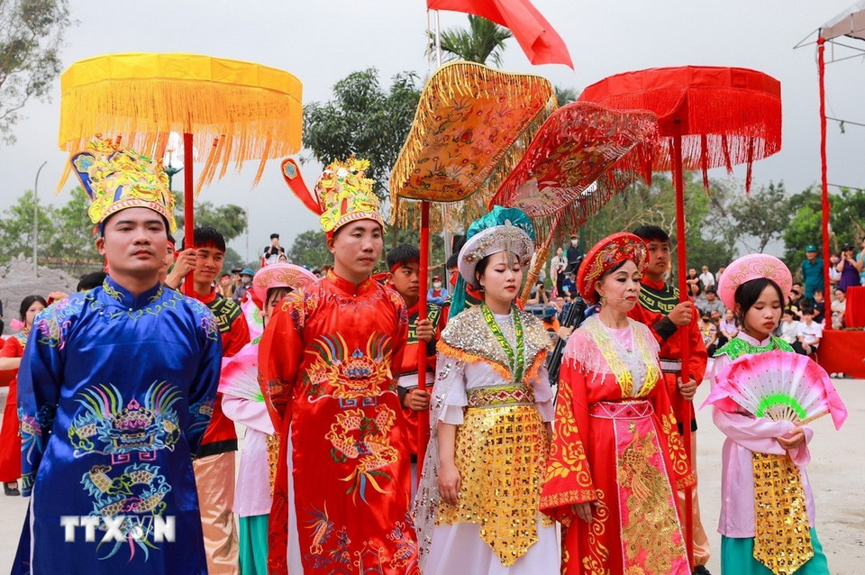 Lễ hội kén rể Đường Yên, xã Thư Lâm (thành phố Hà Nội), diễn ra vào ngày 2 tháng 2 âm lịch. (Ảnh: Khánh Hòa/TTXVN)