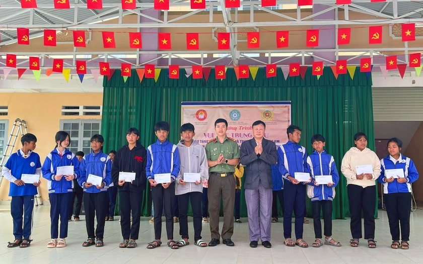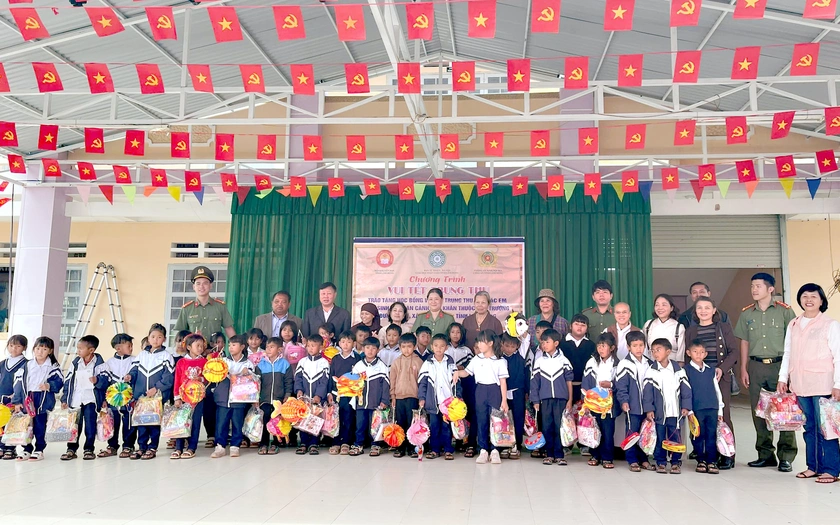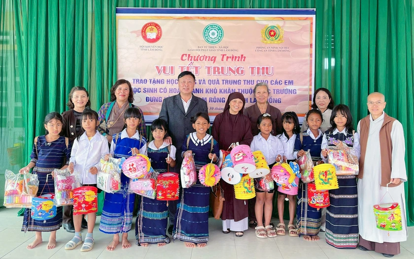 Hội Khuyến học tỉnh Lâm Đồng; Ban Từ thiện - Xã hội Giáo hội Phật giáo tỉnh Lâm Đồng và Phòng PA02 Công an tỉnh Lâm Đồng trao quà Trung thu cho các học sinh. Ảnh: Báo Lâm Đồng