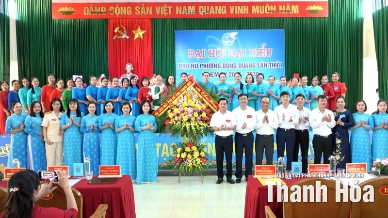 Các đồng chí lãnh đạophường Đông Quang tặng hoa chúc mừng BCH Hội LHPN phường.