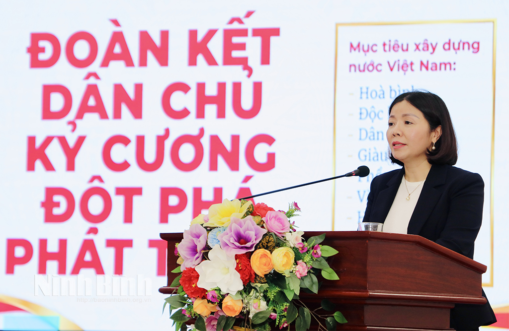 Tại hội nghị, đồng chí Chủ tịch Hội LHPN tỉnh Đào Thị Hòa đã thông tin những nội dung cốt lõi về kết quả Đại hội đại biểu toàn quốc lần thứ XIV của Đảng, nhấn mạnh đây là sự kiện chính trị đặc biệt trọng đại của toàn Đảng, toàn dân, toàn quân ta; là dấu mốc mở ra chặng đường phát triển mới của đất nước trong bối cảnh, cục diện và mục tiêu mới; là Đại hội của ý chí tự chủ chiến lược, tự lực, tự cường, tự hào dân tộc, của khát vọng vươn lên, của niềm tin son sắt vào con đường mà Đảng, Bác Hồ và Nhân dân ta đã lựa chọn.