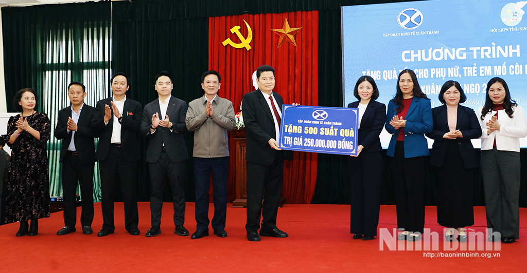 Tại chương trình, ông Nguyễn Xuân Thành, Chủ tịch HĐQT Tập đoàn Kinh tế Xuân Thành, Chủ tịch Hiệp hội Doanh nghiệp tỉnh đã trao biển tượng trưng 500 suất quà, với tổng trị giá 250 triệu đồng cho Hội LHPN tỉnh. Trong đó, lãnh đạo Tập đoàn Kinh tế Xuân Thành đã trao trực tiếp 50 suất quà cho hội viên phụ nữ nghèo phường Hoa Lư; số quà còn lại sẽ được các cấp Hội phụ nữ trao cho hội viên phụ nữ, trẻ em mồ côi, hoàn cảnh khó khăn trên địa bàn tỉnh.