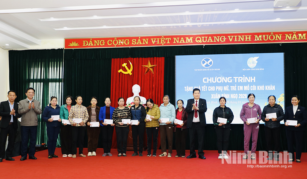 * Nhân dịp chào đón Xuân Bính Ngọ 2026, chiều 29/1, Hội LHPN tỉnh và Tập đoàn Kinh tế Xuân Thành phối hợp tổ chức chương trình “Tết yêu thương” tặng quà Tết cho phụ nữ, trẻ em mồ côi, hoàn cảnh khó khăn trên địa bàn tỉnh.