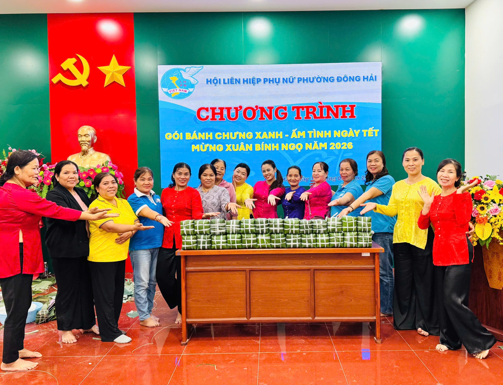 Trước đó, ngày 12-2, hội đã tổ chức chương trình “Gói bánh chưng xanh - Ấm tình ngày Tết” thu hút sự tham gia của đông đảo cán bộ, hội viên, phụ nữ. Tại chương trình, hội đã gói 200 chiếc bánh chưng để tặng hội viên, phụ nữ có hoàn cảnh khó khăn trên địa bàn, góp phần mang đến một mùa xuân ấm áp, nghĩa tình cho các gia đình.
