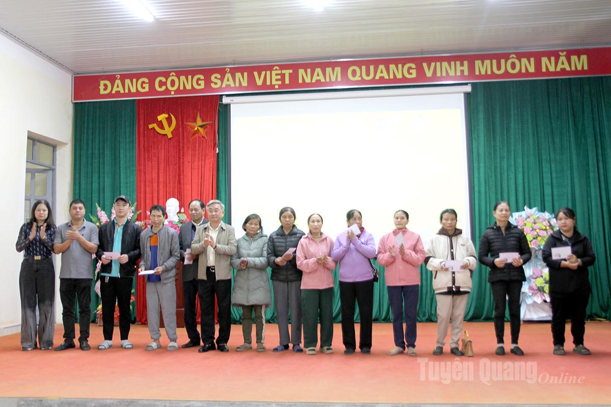 Lãnh đạo Đảng ủy xã Thái Bình cùng các nhà hảo tâm trao quà cho các hộ dân có hoàn cảnh khó khăn.