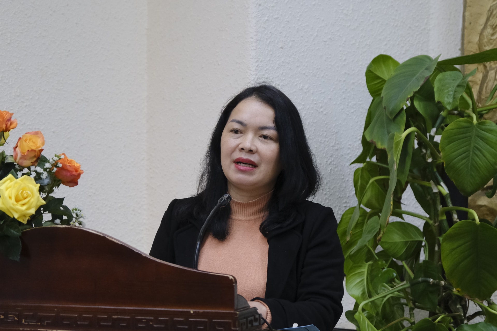 Phó Chủ tịch Ủy ban MTTQ Việt Nam tỉnh Lâm Đồng Đỗ Thị Quế Phương phát biểu tại Hội nghị