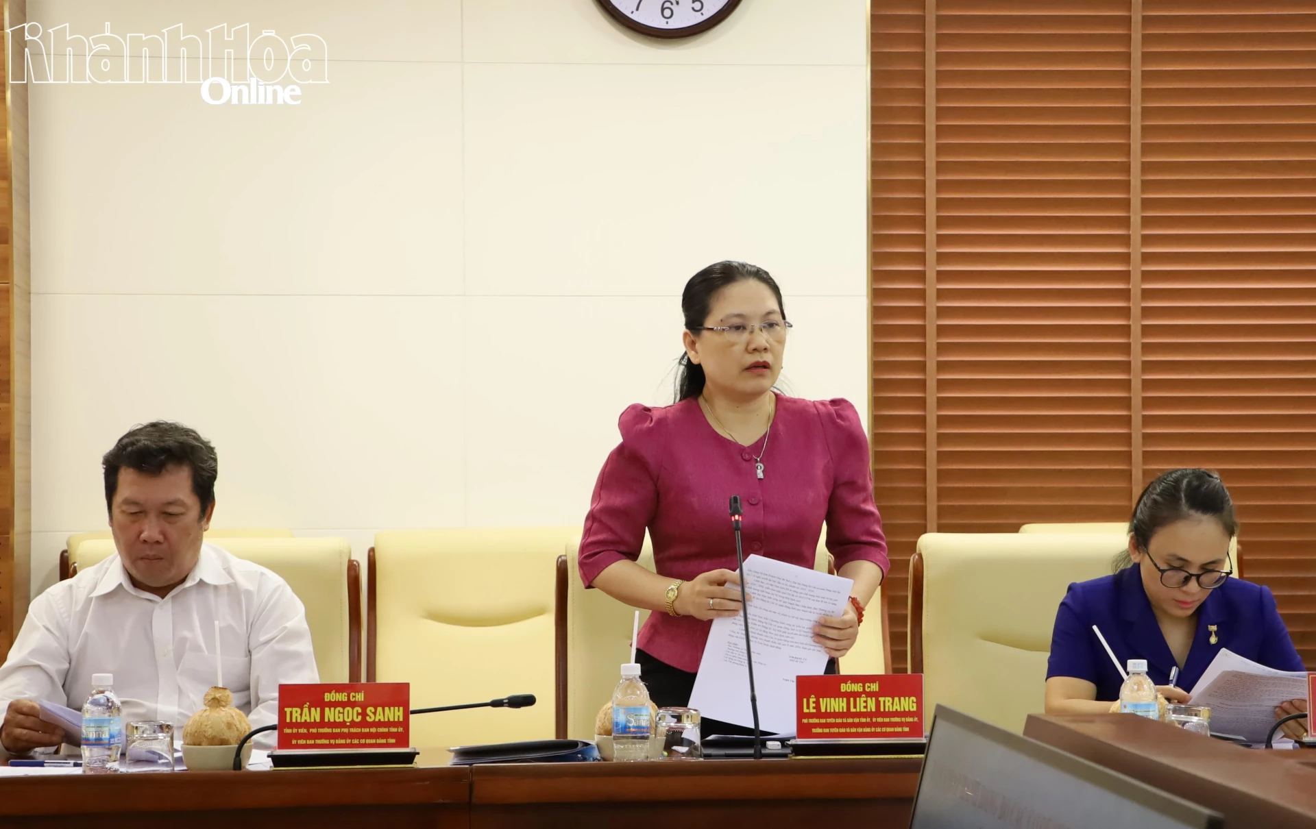 Đồng chí Lê Vinh Liên Trang - Phó Trưởng Ban Tuyên giáo và Dân vận Tỉnh ủy, Trưởng Ban Tuyên giáo và Dân vận Đảng ủy Các cơ quan Đảng tỉnh phát biểu tại hội nghị.