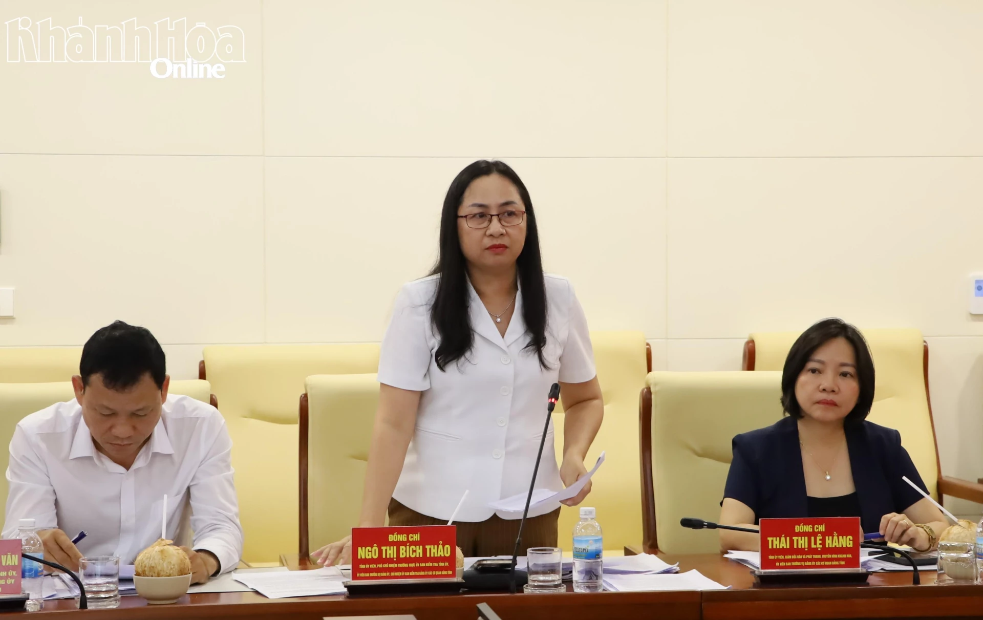 Đồng chí Ngô Thị Bích Thảo - Phó Chủ nhiệm Thường trực Ủy ban Kiểm tra Tỉnh ủy, Chủ nhiệm Ủy ban Kiểm tra Đảng ủy Các cơ quan Đảng tỉnh phát biểu.