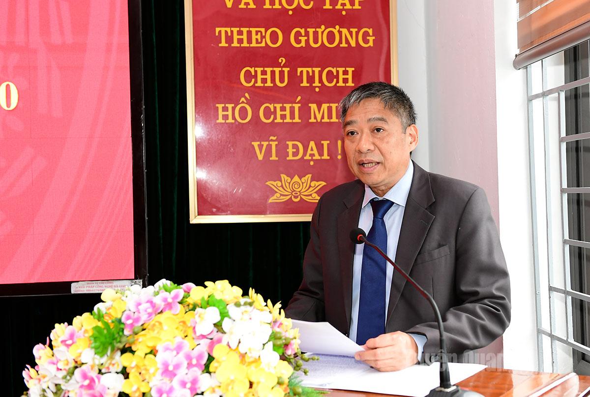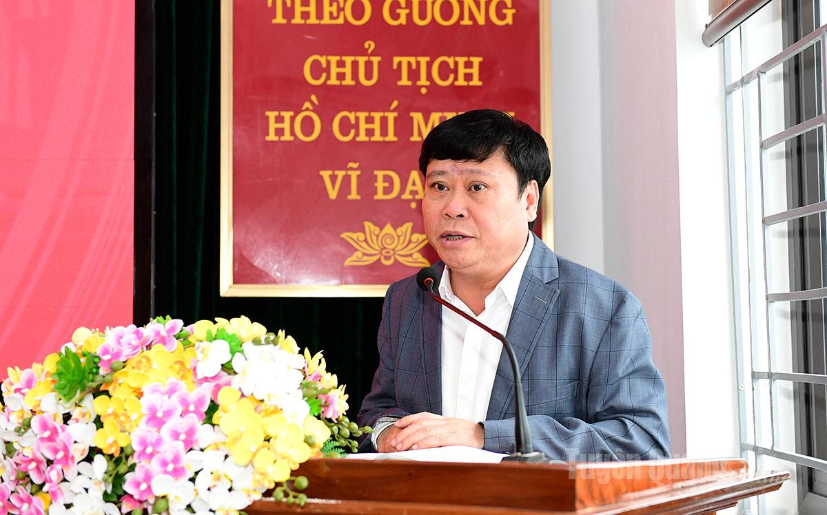 Đồng chí Mai Đức Thông, Ủy viên BCH Đảng bộ tỉnh, Giám đốc Báo và phát thanh, truyền hình Tuyên Quang phát biểu tại hội nghị.