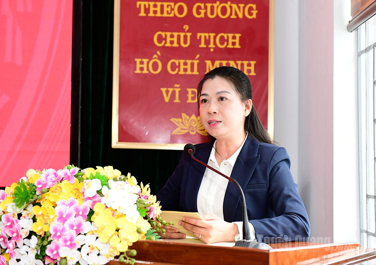 Đồng chí Nguyễn Hồng Trang, Ủy viên Ban Thường vụ Tỉnh ủy, Phó Bí thư Thường trực chuyên trách Đảng ủy phát biểu khai mạc hội nghị.