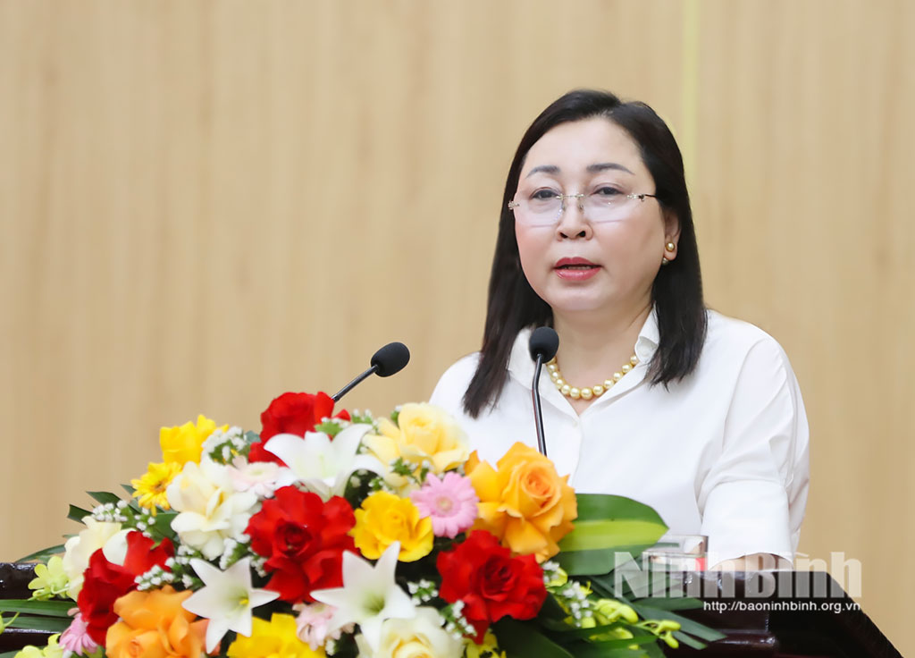 Đồng chí Đinh Thị Lụa, Phó Bí thư Thường trực Tỉnh ủy thông qua chương trình hội nghị.